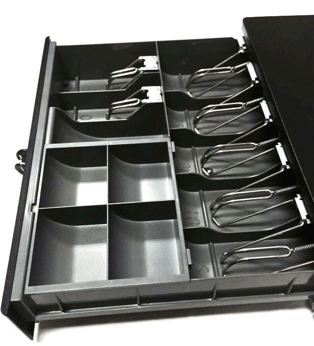 Оснащений 8 секціями для купюр і 4-ма для монет.