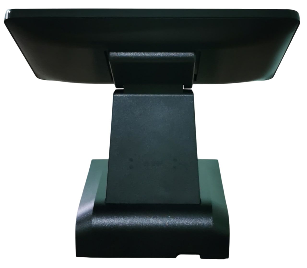 Разработчиком реализована возможность регулировки вертикального угла наклона дисплея, а на правую нижнюю часть выведены два порта USB, что позволяет оперативно подключать носитель информации и клавиатуру для установки ОС и настройки программного обеспечения. Питание терминала осуществляется от внешнего БП. Все разъёмы подключения и материнская плата размещены в нижней части корпуса (подставка устройства), кнопка включения и индикация питания совмещены и расположены на креплении экрана терминала, что существенно минимизирует случайное выключение устройства.