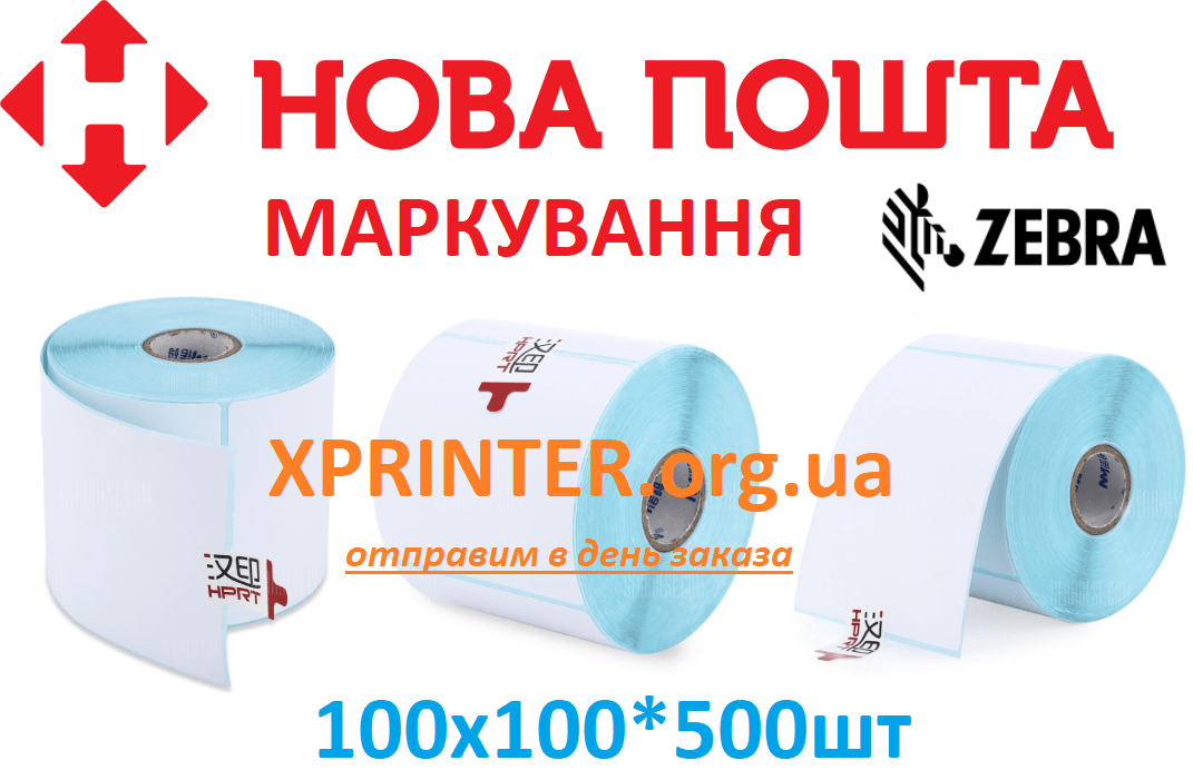 Етикетка 100 х 100мм 500шт для маркування ТТН Нової Пошти