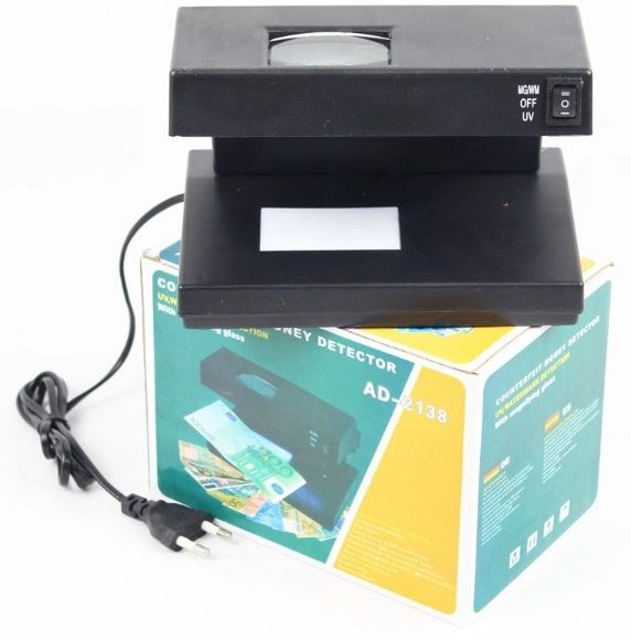 Лампа для Грошей від мережі Ультрафіолетова лампа детектор валют AD-2138 добре зарекомендувала себе в банках, бухгалтеріях, дрібних і великих офісах, пунктах обміну, в ресторанах, а також на багатьох заправних станціях.