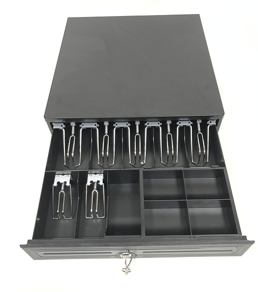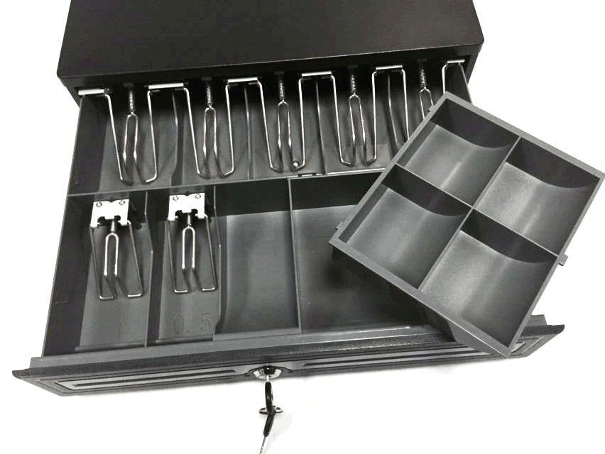 Оснащений 8 секціями для купюр і 4-ма для монет.