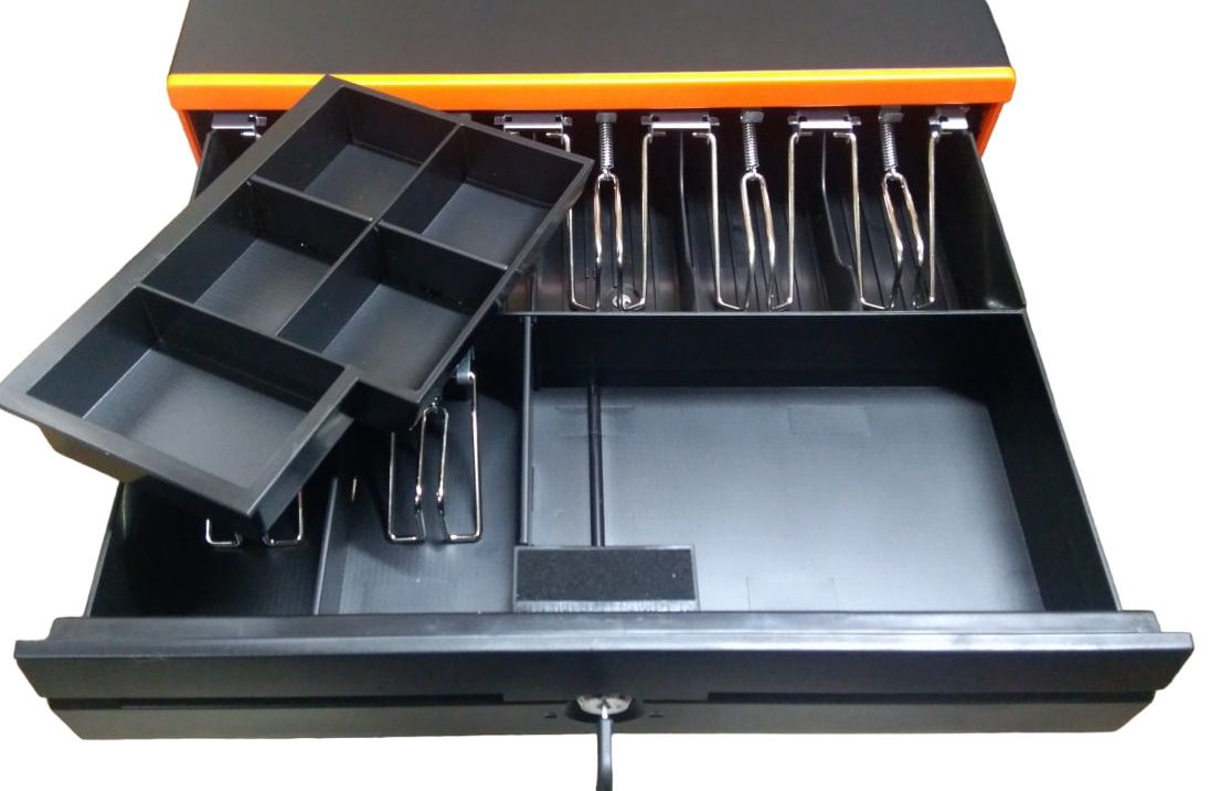 Оснащений 8 секціями для купюр і 4-ма для монет.