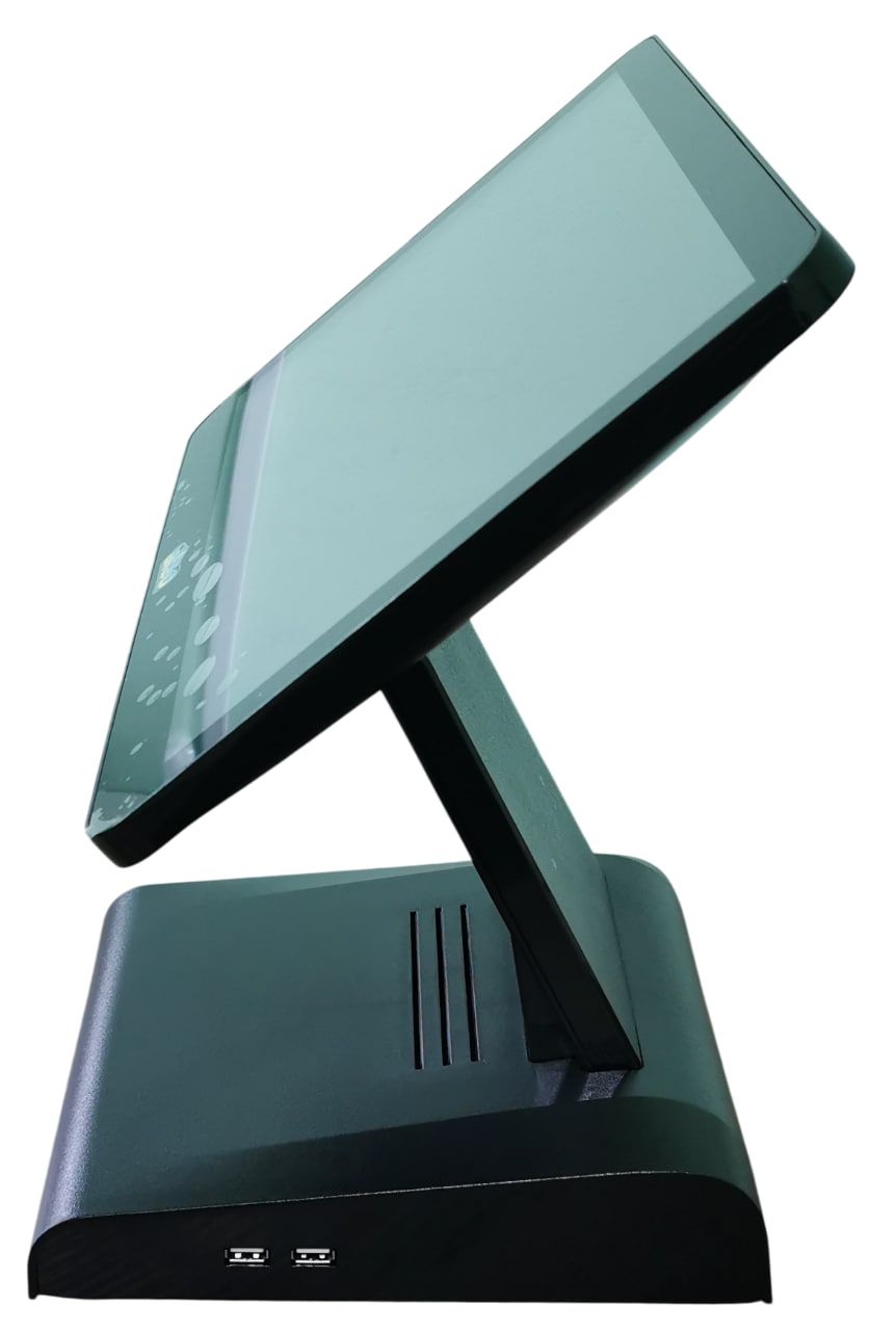 Разработчиком реализована возможность регулировки вертикального угла наклона дисплея, а на правую нижнюю часть выведены два порта USB, что позволяет оперативно подключать носитель информации и клавиатуру для установки ОС и настройки программного обеспечения. Питание терминала осуществляется от внешнего БП. Все разъёмы подключения и материнская плата размещены в нижней части корпуса (подставка устройства), кнопка включения и индикация питания совмещены и расположены на креплении экрана терминала, что существенно минимизирует случайное выключение устройства.