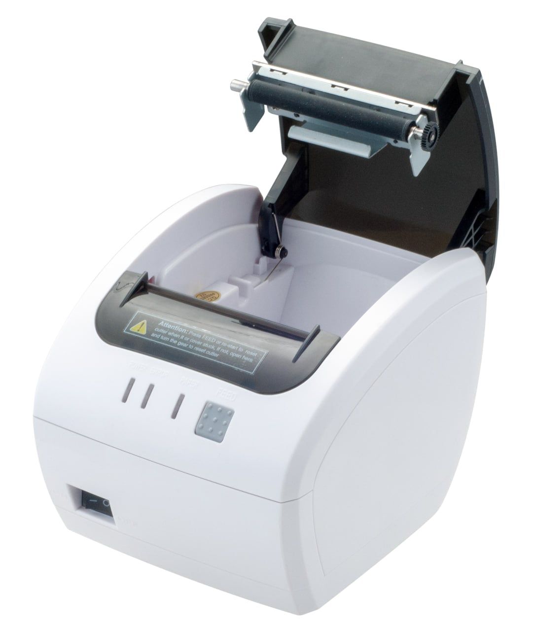 - Легке завантаження паперу та великий діаметр рулону скорочують час, необхідний касиру для заміни паперу